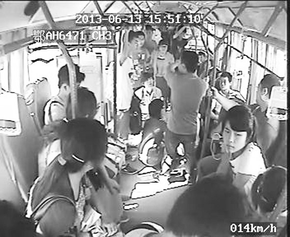 1名女性乘客在公交車上突然昏厥,來自武漢船舶職業技術學院的姚作霖、李瀟瀟、周勇、楊承杰、文德麟、羅權、周雪東、李峰、曹思明9名大學生伸出援手熱心相助。