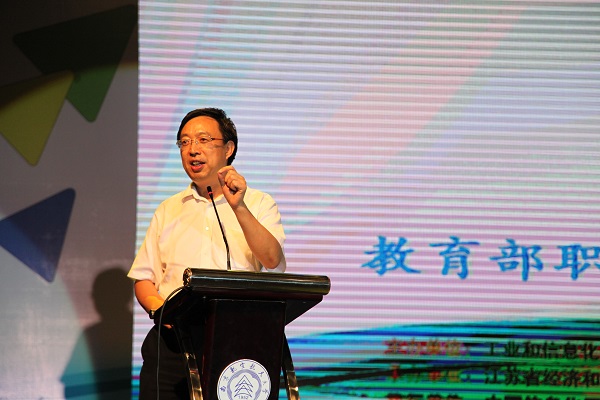 教育部職業教育與成人教育司葛道凱司長、工業和信息化部軟件服務業司陳偉司長、江蘇省教育廳沈健廳長、江蘇省經濟和信息化委員會徐一平主任出席了在南京航空航天大學舉行的頒獎典禮。南京市雨花臺區區委書記、中國(南京)軟件谷工委書記張一新,南京航空航天大學聶宏校長、中國工程院倪光南院士、江蘇省經濟和信息化委員會龔懷進副主任、江蘇省教育廳丁曉昌副廳長、中國電子信息產業發展研究院楊拴昌副院長等領導,以及來自高校的眾多評審專家,來自中國航信、用友軟件、宇龍酷派、遠光軟件、瑞中數據、石化盈科等軟件骨干企業的代表出席了頒獎典禮。