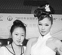 張精是個熱愛形象設(shè)計的女生,憑借嫻熟的技藝和手法,今年24歲的她曾分別獲得2011年全國職業(yè)院校技能大賽(以下簡稱“國賽”)晚宴化妝發(fā)型設(shè)計造型,和2012年國賽新娘化妝盤發(fā)造型一等獎,是名副其實的“雙料王”冠軍。