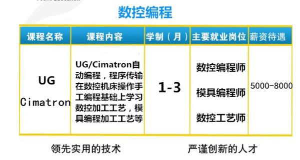 數控編程基礎課程 (注:單獨學習UG編程必須要有操作基礎,單獨學習UG軟件編程課程中并不包括CAD二維制圖、UG三維制圖、以及手工編程中的課程內容) U